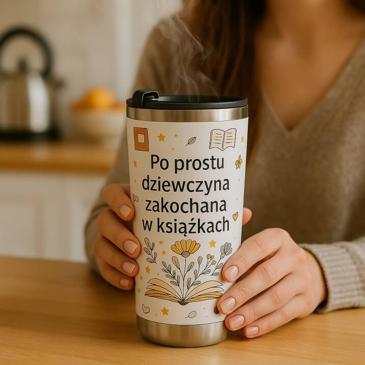 "Kupiłam Oli na urodziny i ona dosłownie powiedziała 'to ja!'. Codziennie widzę jak przychodzi do pracy z tym kubkiem i wszyscy pytają skąd go ma. Napis 'jeszcze jeden rozdział' to w 100% ona – siedzi z książką do 2 w nocy, a rano narzeka że nie wyspana 😄"